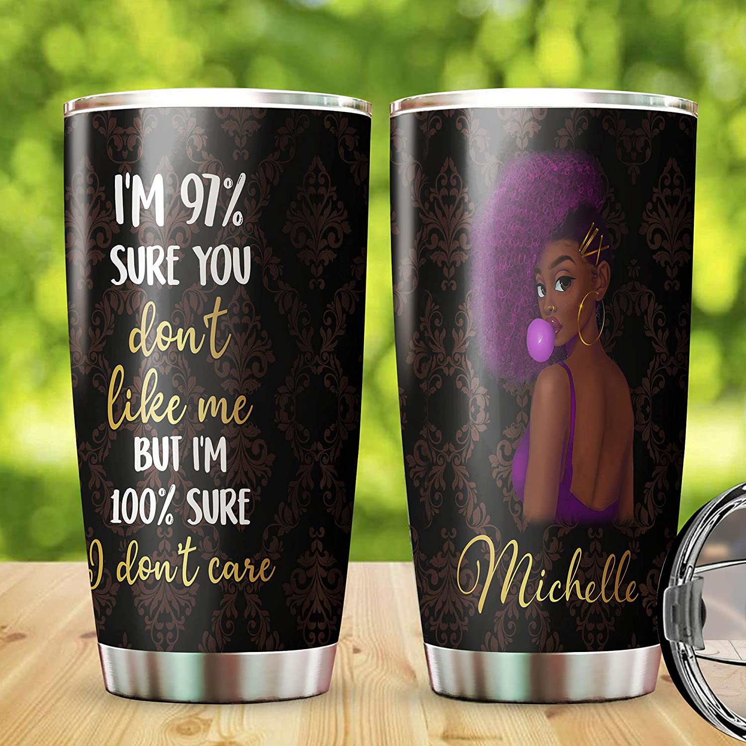 I’M 97% Sure You Don’T Like Me I Don’T Care Tumbler, Personalized Black Women Stainless Steel Tumbler, Melanin Afro Girl Tumbler, Black Girl Magic, Black Queen Gifts, African American.