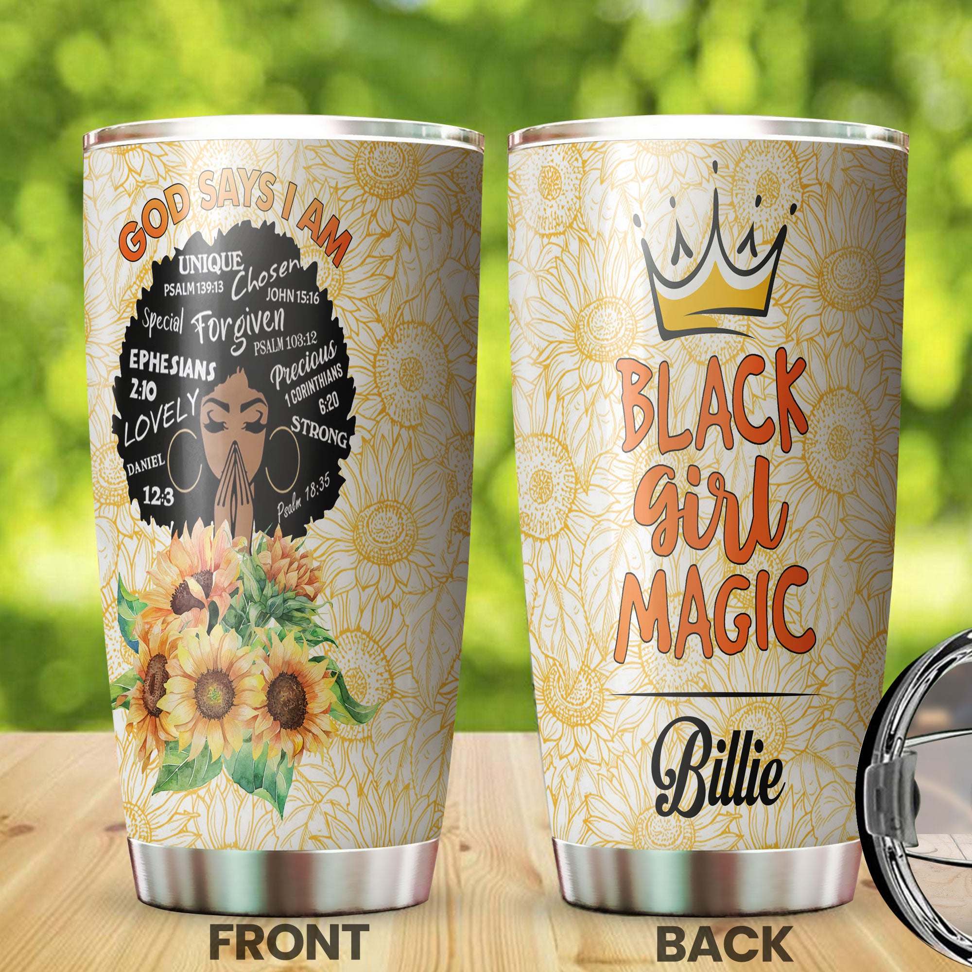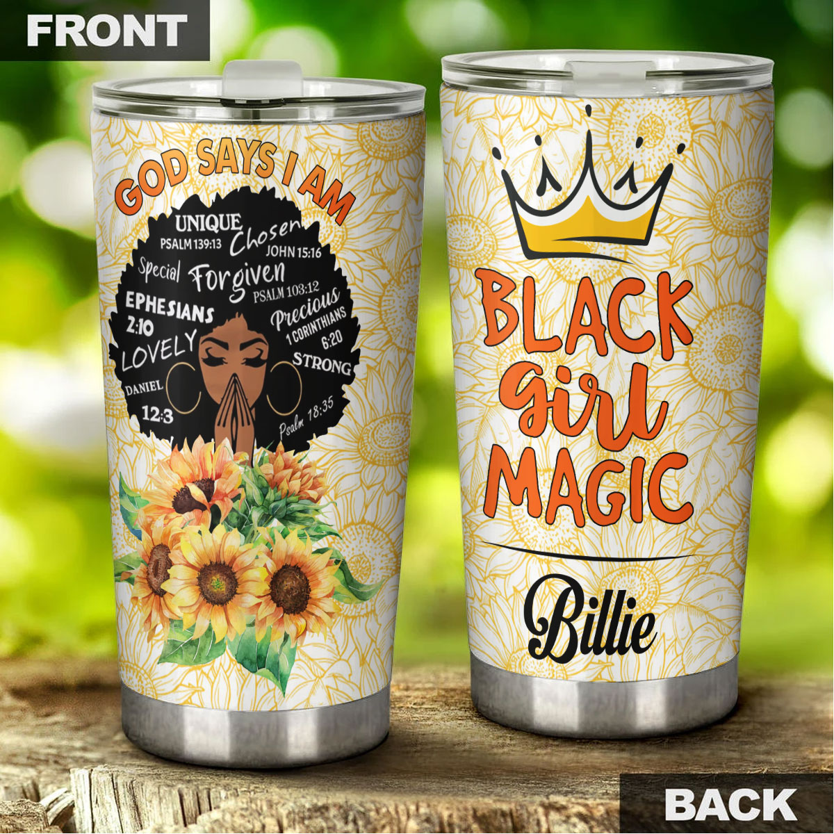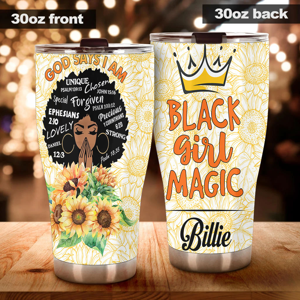 Persionalized 3D Black Girl Magic Stainless Steel Tumbler – Customized Double – Walled Insulation Travel Thermal Cup With Lid Gift For Black Queen Christian